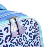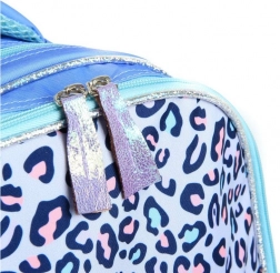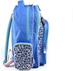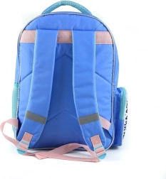 Rucsacul este proiectat cu nuanțe predominante de albastru-violet și modele adorabile, ceea ce îl face un accesoriu jucăuș și preferat de copii.
