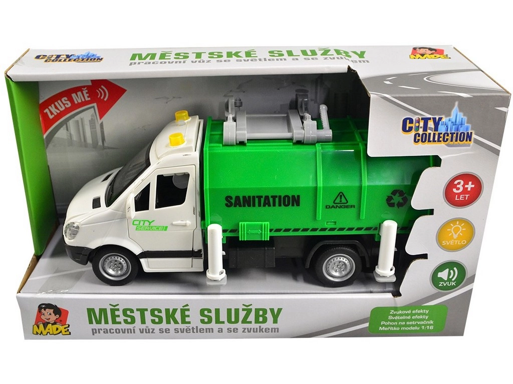Mașină de gunoi pe inerție este jucăria perfectă pentru copiii care iubesc aventurile și tehnologia interesantă. Jucăria cu efecte luminoase și sonore cu siguranță va atrage atenția fiecărui băiat mic.