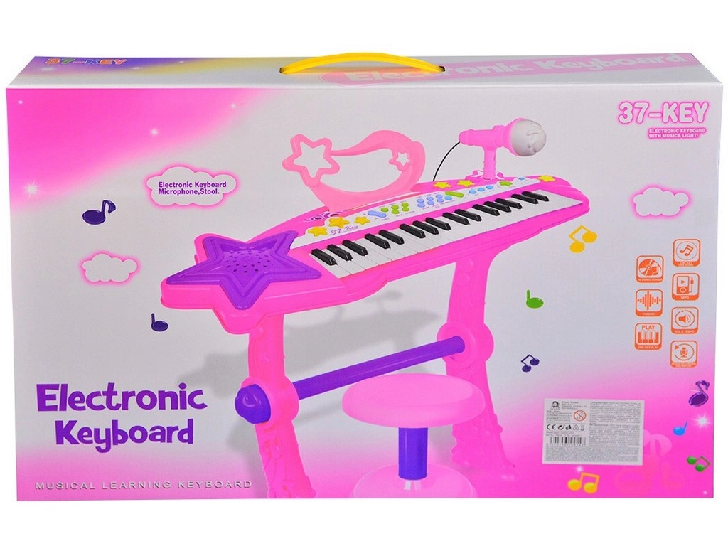 Acest pian electronic uimitor aduce copiilor bucuria muzicii datorită celor 37 de clape, care permit interpretarea melodiilor simple. Pianul este fabricat din plastic durabil și este proiectat pentru a fi atrăgător și prietenos pentru copii.