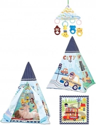 Acest cort distractiv este ideal pentru copii de la naștere. Pachetul include multe jucării care sunt sigure și fixate cu un clește. Jucăriile pot fi ușor atașate la cărucior, pătuț sau scaun auto datorită cleștelui universal, care poate servi simultan drept jucărie de dentiție. Cleștii sunt concepuți pentru a ajuta la antrenarea prinderii la copii. Cortul este ușor și ușor de transportat, permițând joaca oriunde.