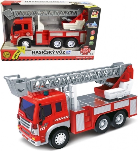 Mașina de pompieri cu baterii din colecția City Collection, care luminează și emite sunet, este ideală pentru salvări în caz de accidente rutiere sau incendii și zone inaccesibile.
