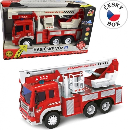 Mașină de Pompieri cu Platformă din colecția City este un adaos excelent pentru orice mic erou. Model realist cu baterii, care strălucește și emite sunete, oferind o experiență autentică de conducere a vehiculelor de pompieri.