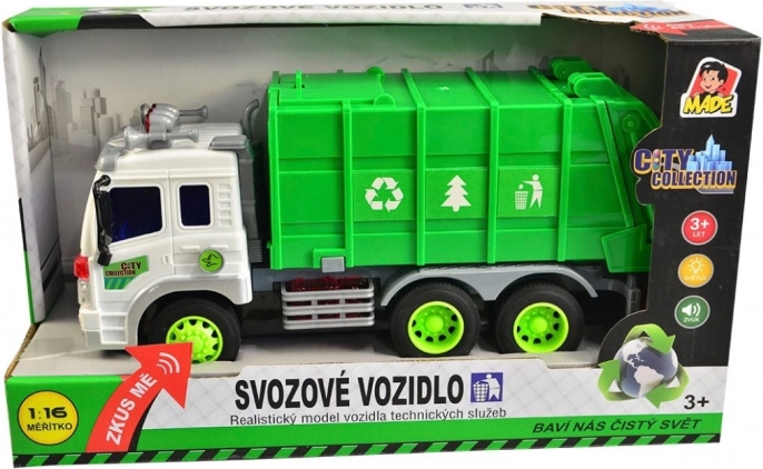 Mașină de gunoi MaDe din colecția City Collection aduce emoție fiecărei sesiuni de joacă. Funcționează pe baterii, luminează și scoate sunete, oferind astfel o experiență autentică de curățare și reciclare a deșeurilor.