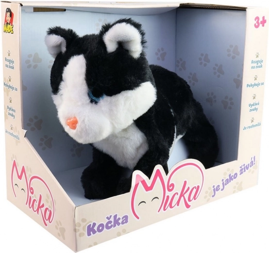 Cu pisica Micka pe baterii, trăiți momente pline de bucurie. Prin mișcare la sunet această pisică își ridică lăbuțele și își arcuiește spatele, creând iluzia unei pisici adevărate. În plus, miaună și scoate diverse sunete pisicești, atrăgând astfel atenția.
