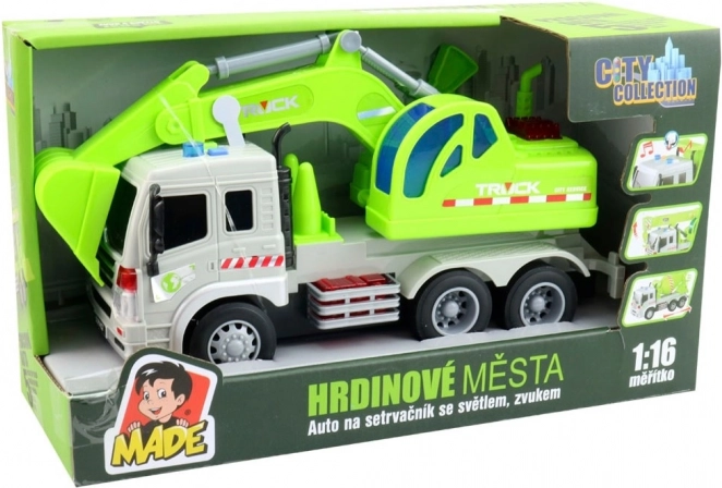 Pentru micii exploratori și iubitorii de mașini, aici este Auto Excavator City Collection, care oferă adevărată distracție datorită efectelor sale funcționale luminoase și sonore.