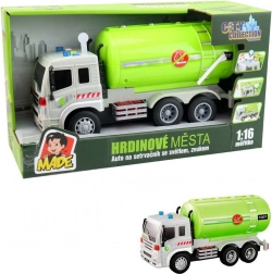 Această autocisternă este jucăria ideală pentru toți băieții care iubesc mașinile mari și doresc să trăiască aventuri. Jucăria este proiectată pentru copii de la 3 ani și este fabricată din plastic sigur. Dimensiunile jucăriei sunt 26,5 x 10 x 13,5 cm, ceea ce o face ușor de manevrat și atrăgătoare pentru tinerii șoferi. Datorită inerției și efectelor luminoase și sonore adăugate, joaca va fi și mai distractivă.