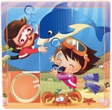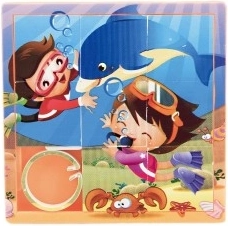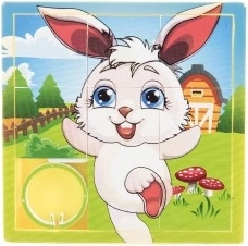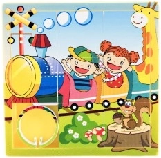 Acest puzzle glisant este o jucărie distractivă care ține copiii captivați timp de ore întregi. Este un set de opt piese de aceeași dimensiune cu șine laterale, care formează o imagine finală. Piesele sunt ușor de deplasat și sunt încadrate astfel încât să nu cadă. Cadrul conține o miniatură a imaginii finale, servind drept model pentru plasarea pieselor.