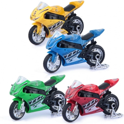 Motocicletă de curse metalică cu dimensiunea de 11 cm este o jucărie grozavă pentru micii piloți de curse cu vârsta de 3 ani și mai mult. Fabricată din plastic de calitate, garantează o durată lungă de viață și siguranță la joacă.