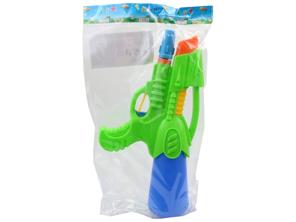 Pistolă cu apă pentru copii din plastic, ideală pentru distracția în aer liber și jocurile de vară. Jucăria este destinată copiilor de la 3 ani.