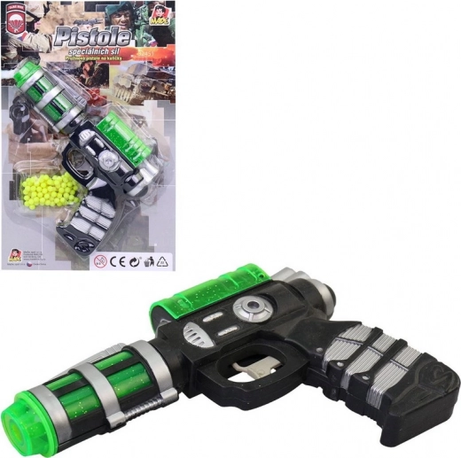 Acest pistol cu bile este alegerea perfectă pentru băieții mici care iubesc jocurile de acțiune. Este ușor de apucat datorită dimensiunii sale de 18 cm și este fabricat din plastic durabil, ceea ce garantează siguranța și durabilitatea. Jucăria este livrată într-un ambalaj practic de tip blister card, care include și 100 de bile de schimb pentru distracție nesfârșită. Destinat copiilor de la 3 ani și susține creativitatea și imaginația lor.