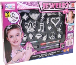 Susține creativitatea și abilitățile motorii fine ale copiilor dumneavoastră cu setul pentru colorat bijuterii. Această jucărie este concepută pentru a oferi ore întregi de distracție, timp în care copiii pot crea bijuterii unice proprii. Conține diverse elemente care pot fi ușor colorate și personalizate:
