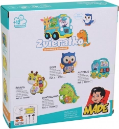 Acest pian în formă de bufniță este alegerea perfectă pentru copiii de la 12 luni. Susține dezvoltarea abilităților motorii, percepția culorilor, abilitățile auditive și cunoașterea animalelor. Oferă iluminare blândă și mai multe funcții muzicale pentru distracție și învățare. Necesită 2 baterii AA care nu sunt incluse în pachet.