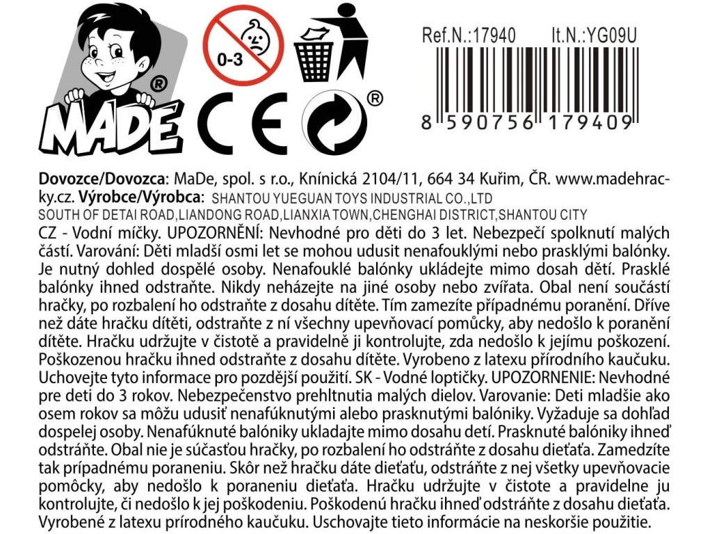 Acest set de baloane cu apă este alegerea perfectă pentru oricine iubește aventurile verii. Baloanele sunt fabricate din cauciuc de calitate, asigurându-le durabilitatea și flexibilitatea. Fiecare balon are dimensiunile de 12,5 x 3 x 23,5 cm, fiind ușor de umplut cu apă pentru o bătălie plină de distracție răcoritoare.