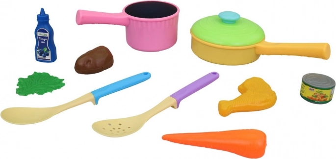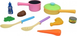 Acest set de bucătărie este perfect pentru micii iubitori de gătit. Cu dimensiunile de 28 x 20 cm, este ideal pentru jocurile copiilor. Fabricat din plastic durabil, garantează siguranța și o durată lungă de viață. Ambalajul este practic, livrat într-o pungă cu card, ceea ce permite depozitarea ușoară.