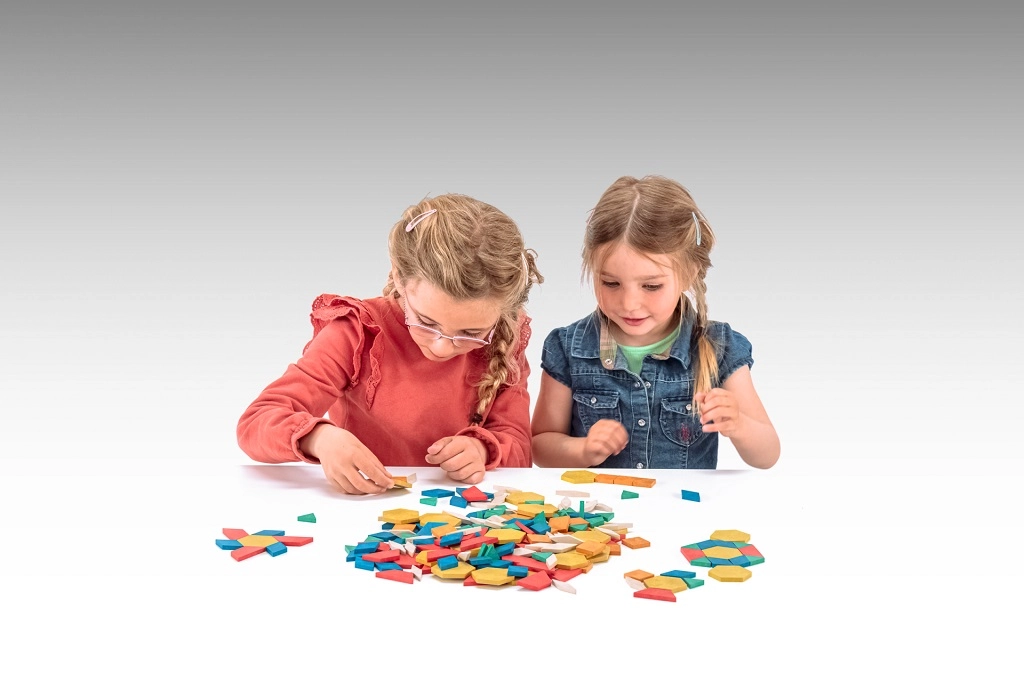 Ideal pentru primele experiențe jucăușe cu geometria și descoperirea simetriei.