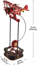 Modelul include părți mobile și un mecanism cu pendul care simulează mișcarea realistă a avionului.