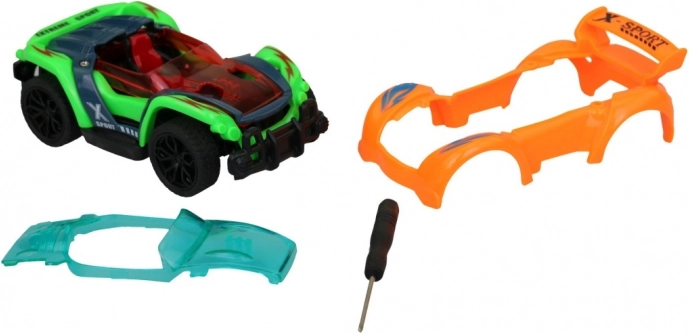 Mașină cu caroserie interschimbabilă, jucărie ideală pentru copii de peste 6 ani, oferă ore de distracție și creativitate.