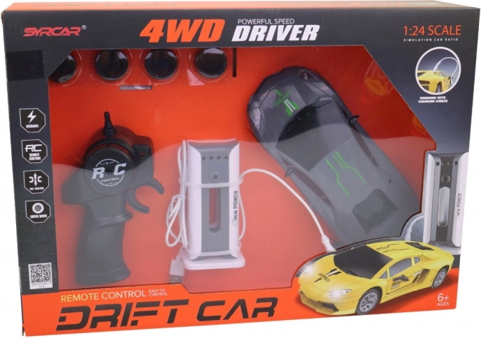 Mașină electrică de 19 cm cu roți interschimbabile, drift și stație de încărcare. Jucăria ideală pentru copiii de la 6 ani.
