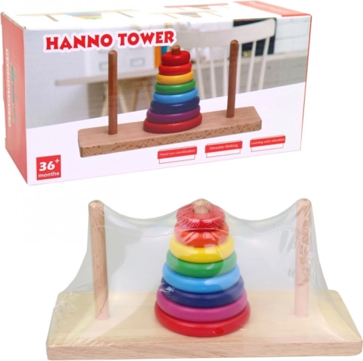 Turnul de lemn este o jucărie populară apreciată atât de copii, cât și de părinți. Ajută copiii să exerseze motricitatea fină și percepția spațială. Datorită inelelor colorate, copiii pot învăța și culorile, dezvoltând astfel abilitățile cognitive.