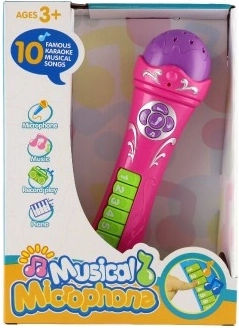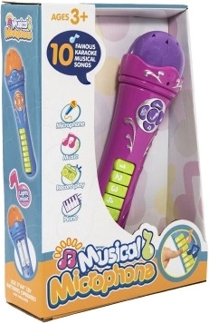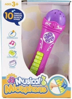 Cu microfonul care include 16 cântece înregistrate, copiii se vor bucura de multă distracție. Își pot înregistra propriile cântece, pot cânta karaoke sau chiar pot cânta la pian. Dimensiune microfon: 23 cm Dimensiune cutie: 20 x 27 x 6,5 cm Potrivit de la 3 ani