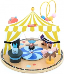Descoperiți lumea magică a circului cu labirintul mecanic de la Vilac, conceput de ilustratoarea Michelle Carlslund. Această jucărie oferă șase activități fascinante pentru dezvoltarea fanteziei și a abilităților motorii fine ale copiilor.