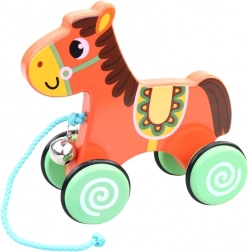 Această jucărie de tras din lemn, în formă de cal, nu doar că oferă distracție, dar stimulează și simțurile datorită clopoțelului, care emite un sunet blând la mișcare. Este fabricată din lemn de calitate și are dimensiunea de 16 cm, făcând-o ușor de manevrat pentru mâinile mici ale copiilor.