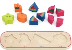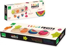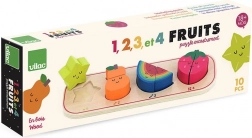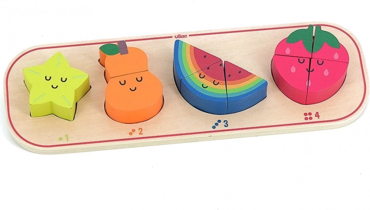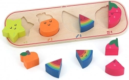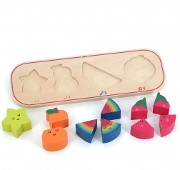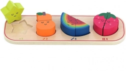 Acest puzzle educativ aduce copiilor bucuria descoperirii și învățării prin joc. Fiecare piesă de fructe, precum carambola galbenă, para portocalie, pepenele colorat și căpșuna roșie, vine în diferite numere de piese pentru a fi inserate în baza de lemn. Copiii învață să recunoască formele, culorile și numerele corespunzătoare, ceea ce le dezvoltă în mod natural motricitatea fină și coordonarea mână-ochi.