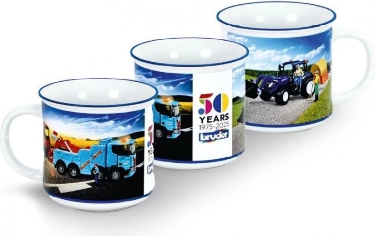 Cana publicitară elegantă Bruder din ceramică cu motive de jucării îndrăgite pentru un început plăcut al zilei tale.