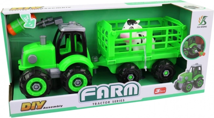 Tractor cu remorcă de montat pentru copii, ideal pentru dezvoltarea abilităților. Include baterii. Pentru băieți de la 3 ani.
