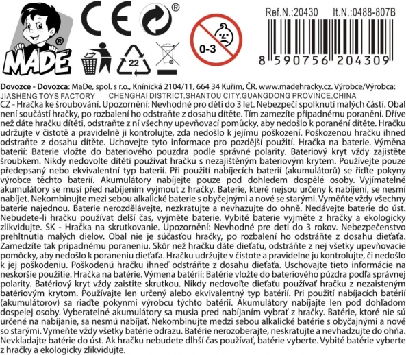 Tractorul are dimensiunile de 32,5 x 12 x 13 cm și este fabricat din plastic durabil, asigurând o durată lungă de viață chiar și cu utilizare frecventă. Jucăria este ambalată într-o cutie de prezentare practică și este proiectată special pentru băieți.
