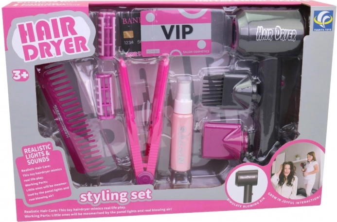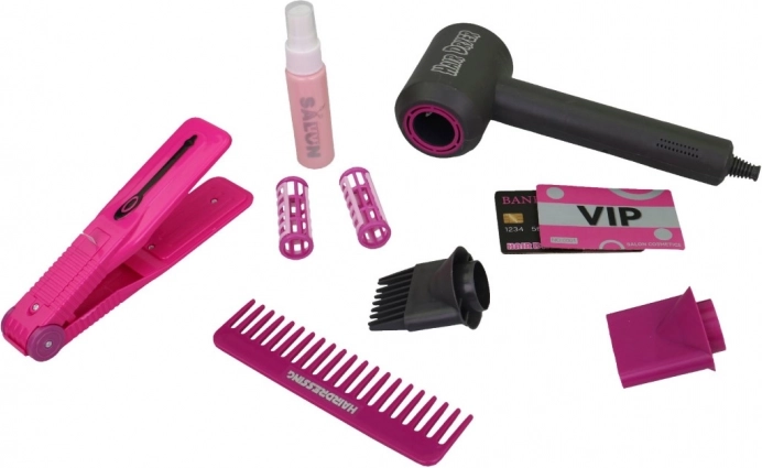 Uscătorul negru cu accesorii este un complement perfect pentru orice mică frizeriță. Simulează un uscător de păr adevărat și oferă distracție copiilor de la 3 ani.