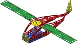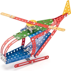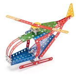 Asamblează un model de elicopter din piese de metal, care sunt disponibile în culori vii și se îmbină ușor.