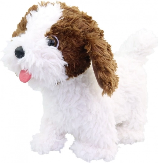 Cățelul de pluș care merge este jucăria ideală pentru copiii mai mari de 3 ani. Este fabricat din pluș moale, ceea ce îl face plăcut la atingere. Pentru a-i activa funcțiile, este suficient să apesi butonul de pe cap, iar cățelul va începe să se miște, să lătre și să dea vesel din coadă.