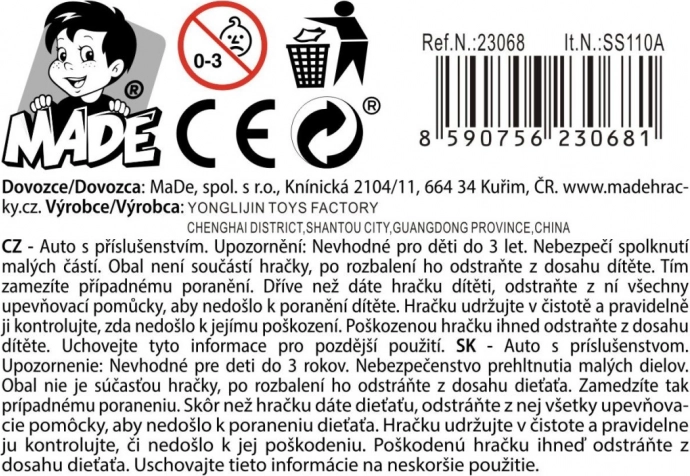 Această mașină cu o cutie compactă de dimensiuni 22 x 12 x 16,5 cm este un companion excelent pentru joaca zilnică. Designul colorat și universal va satisface gusturile unei game variate de mici utilizatori.