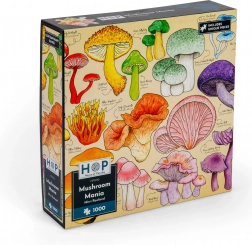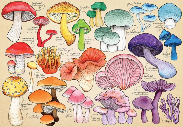 Prin intermediul denumirilor ciupercilor în engleză și latină, puzzle-ul aduce și un element educativ. Imaginea finalizată are dimensiunea aproximativă de 69 x 48 cm.