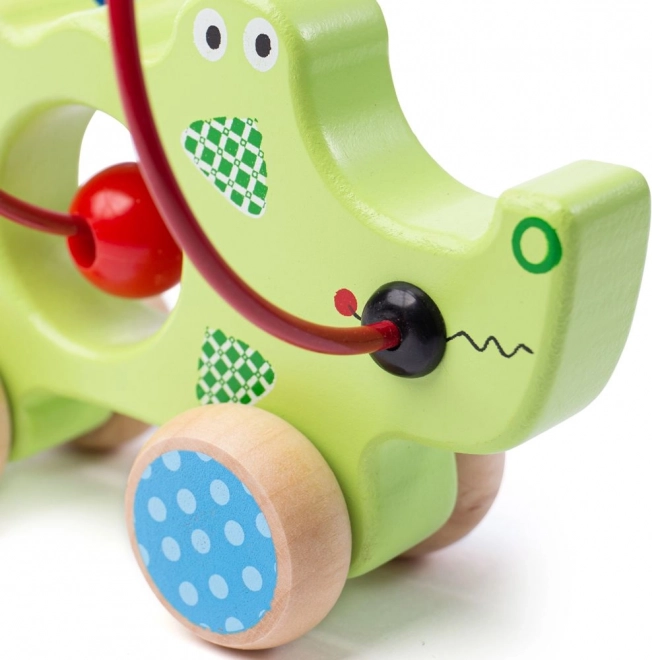 Crocodilul din lemn cu labirint de mărgele este jucăria ideală pentru micii exploratori. Construcția sa colorată atrage atenția și îi învață pe copii coordonarea mișcărilor. Această jucărie este realizată din materiale de calitate și sigure, conform standardelor europene de siguranță. Efectul de rulment al roților asigură că crocodilul se mișcă ușor și copiii pot muta jucăria fără probleme.