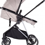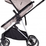 Scaunul se rotește ușor cu orientare în sensul sau invers sensului de mers, spătarul se reglează în 3 poziții, iar centurile cu prindere în 5 puncte, căptușite, asigură siguranța. Părinții vor aprecia plierea compactă cu o mână, coșul mare pentru cumpărături și mânerul îmbrăcat în material de calitate pentru o direcționare confortabilă.