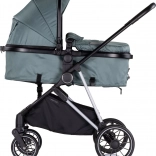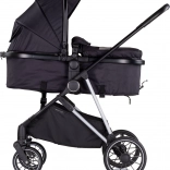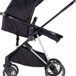 Detalii gândite cu grijă, precum capotina mare, reglabilă cu parasolar detașabil, spătar cu 3 poziții, centură în 5 puncte cu căptușeală și roți suspendate, detașabile, asigură confort și siguranță. Coșul mare, geanta pentru accesorii și husa căptușită pentru picioare completează echiparea zilnică.