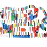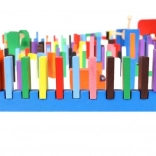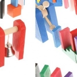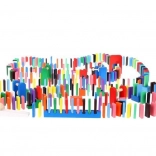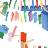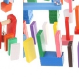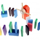 Setul este conceput pentru a stimula creativitatea copilului, permițând crearea diferitelor construcții precum animale, case, vehicule și multe altele. Setul include, de asemenea, numeroase elemente suplimentare care extind posibilitățile de aranjare. Printre acestea se numără, de exemplu, o balansoar, scări, o moară de vânt, poduri și câteva alte piese. Blocurile de domino din lemn sunt foarte rezistente și, mai presus de toate, sigure pentru copii! Fiecare cărămidă are margini rotunjite și este acoperită cu o vopsea specială care nu se transferă și nu conține substanțe toxice sau chimice.
