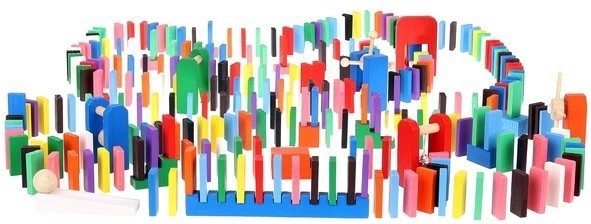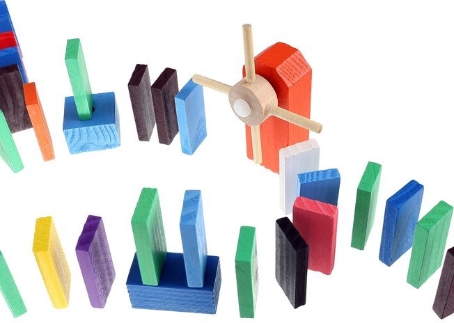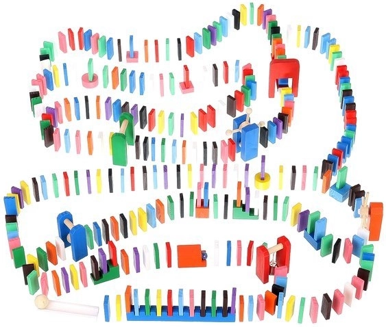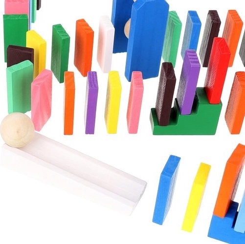 Setul este conceput pentru a stimula creativitatea copilului, permițând crearea diferitelor construcții precum animale, case, vehicule și multe altele. Setul include, de asemenea, numeroase elemente suplimentare care extind posibilitățile de aranjare. Printre acestea se numără, de exemplu, o balansoar, scări, o moară de vânt, poduri și câteva alte piese. Blocurile de domino din lemn sunt foarte rezistente și, mai presus de toate, sigure pentru copii! Fiecare cărămidă are margini rotunjite și este acoperită cu o vopsea specială care nu se transferă și nu conține substanțe toxice sau chimice.