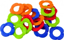 Setul include 20 de inele colorate în 4 culori și o figurină mare de gorilă pe o bază stabilă. Gorila se rotește automat, ceea ce face jocul și mai interesant și mai provocator.