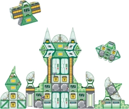 Suprafața 4D Diamond oferă construcțiilor un aspect modern, strălucitor, inspirând copiii să creeze. Ansamblul include atât forme clasice - pătrate, triunghiuri - cât și decorațiuni unice, autocolante cu roboți și rachete, pentru a sprijini fantezia.