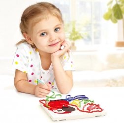 Înșiratul sprijină priza corectă, coordonarea mână–ochi și concentrarea. O activitate excelentă pentru preșcolari, care antrenează într-un mod distractiv abilitățile necesare pentru scris.