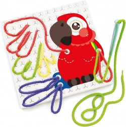 Conține o placă de înșirat rezistentă cu motiv de papagal, patru cartoane robuste cu animale și opt șireturi colorate cu capete pentru manipulare ușoară. Setul este ideal pentru activități acasă și pentru grădinițe și susține simultan motricitatea, antrenarea prizei și percepția vizuală.