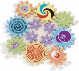 Setul Roți dințate caleidoscopice oferă copiilor posibilitatea de a crea un lanț spectaculos cu roți dințate de diferite dimensiuni, care se rotesc ca pe un carusel. Este compus din 38 de piese, inclusiv plăci perforate, piese de fixare și abțibilduri cu imprimeu colorat. Copiii vor învăța în timpul jocului principiile de bază ale mecanicii și vor descoperi efecte optice cu adevărat magice.