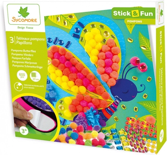 Creează un set de imagini frumoase cu fluturi cu setul creativ Stick & Fun. Conține imagini de carton de calitate, pe care copiii le pot decora conform propriei imaginații: