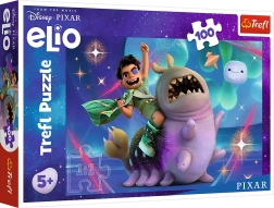 Bucurați-vă de distracția de construcție cu puzzle-ul Elio și aventurile spațiale, care conține 100 de piese și este ideal pentru copii și activități de familie.