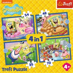 TREFL aduce distracție pentru întreaga familie cu cele patru puzzle-uri Viața lui SpongeBob într-un singur pachet. Fiecare puzzle din set are un număr diferit de piese - 35, 48, 54 si 70, oferind oportunități unice pentru diferite niveluri de abilități.