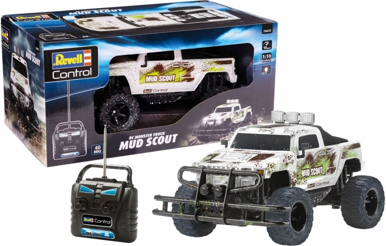 Pachetul include modelul Mud Scout Truck și o telecomandă de calitate 2CH 40 MHz.