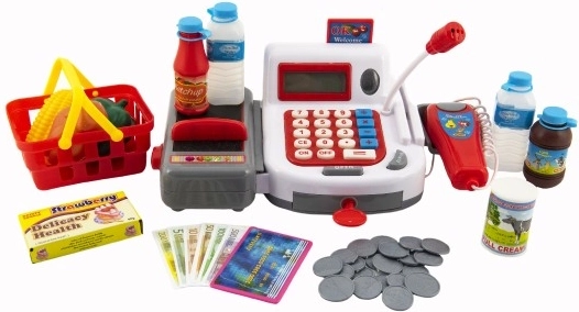 - Accesorii în pachet: tot ce este necesar pentru jocul de-a magazinul.